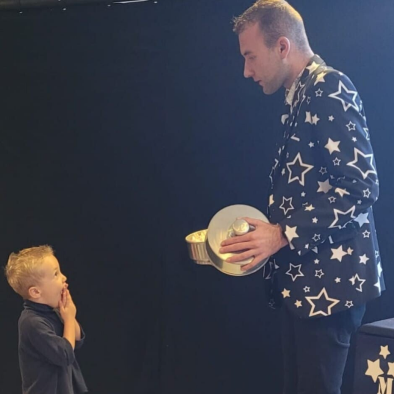 Mijn liefde voor optreden begon al op de basisschool, in groep 8 om precies te zijn. Sindsdien is het razendsnel gegaan. Van kleine feestjes in de buurt tot grote shows door heel Nederland én België. Kinderfeestjes, schoolvoorstellingen, markten, bedrijfsfeesten, Sinterklaasshows… ik heb overal mijn magische voetafdruk achtergelaten. En zelfs in Bosnië hebben ze mijn illusieshow mogen bewonderen. ✨